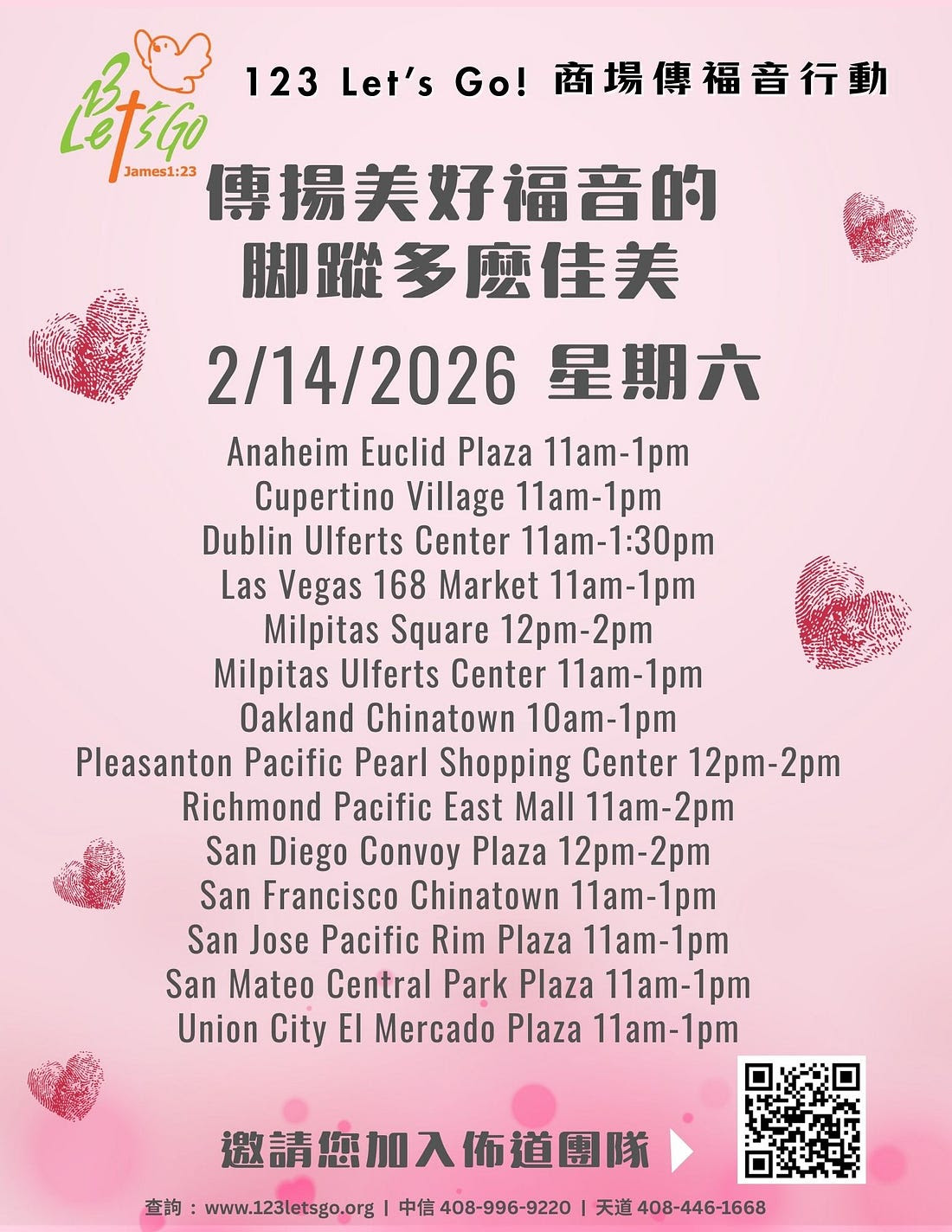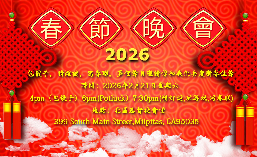 2026年2月14日 From 11 AM to 1 PM 地點:Milpitas Ulferts Center 歐化中心 聯絡:陳國慰弟兄報名:掃描QR碼加入WhatsApp群組